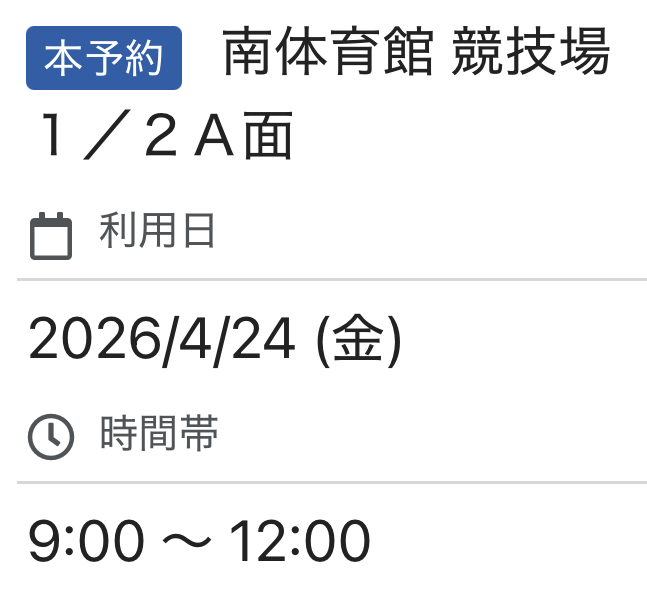 予約団体番号40728262 KTATM【参加者定員】平日朝・日曜夜➡24人 平日夜➡18人 📝市営体育館が会場の際最初に到着された方は上記の予約団体番号と団体名を受付に伝えてから入場してください 👕チーム分け用ウェアについてチ...